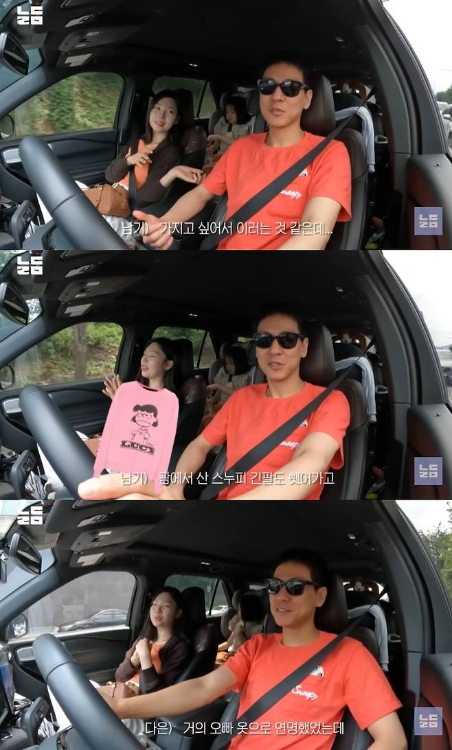이에 윤남기는 "옷을 갖고 싶어서 이러는 것 같다. 또 뺏으려고"라며 "생각해 보니 내가 스누피만 입으면 (이다은이) 다 뺏어간다. 괌에서 산 스누피 긴팔도 뺏어갔다"고 의심해 웃음을 자아냈다.