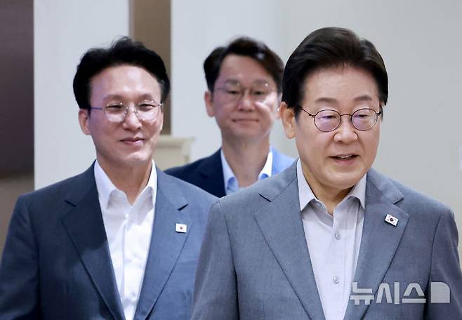 [서울=뉴시스] 최동준 기자 = 이재명 대통령이 15일 서울 용산 대통령실 청사에서 열린 국무회의에 입장하고 있다. (대통령실통신사진기자단) 2025.07.15. photocdj@newsis.com