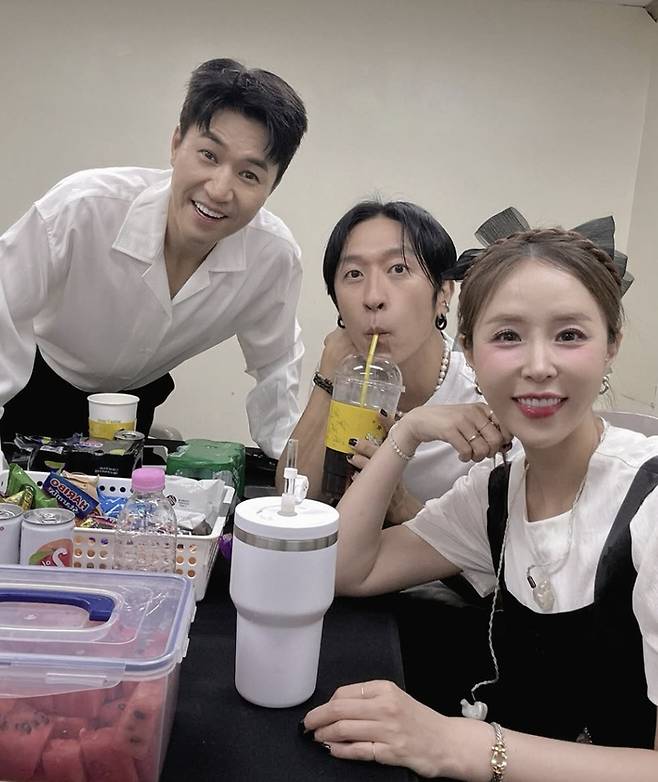 최근 신지는 SNS를 통해 김종민, 빽가와 함께 찍은 사진을 공개하며 "미스트롯 첫정 콘서트 게스트까지! 후배님들과 함께 할 수 있어 행복했다"는 글을 올렸다.
