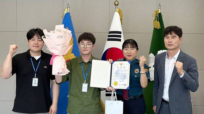 ▲ 경찰 감사장 받은 이진선 태안군 주무관(왼쪽에서 두 번째)