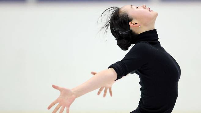 ▲ 피겨 스케이팅 여자 싱글 김채연이 11일 서울 노원구 태릉선수촌 실내빙상장에서 공개 훈련하고 있다.