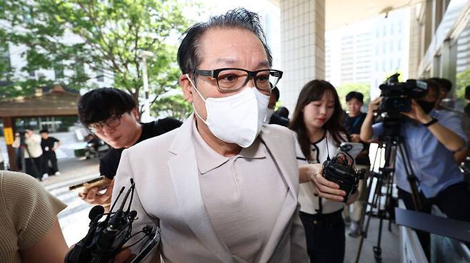 ▲ 2018년 전국지방선거 공천헌금 의혹 혐의를 받는 '건진법사' 전성배 씨가 지난 6월 23일 정치자금법 위반 혐의 사건 1심 속행 재판에 출석하기 위해 법정으로 향하고 있다.