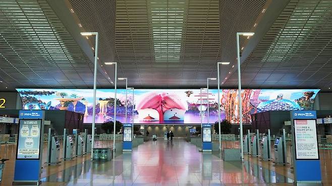 [서울=뉴시스] 인천국제공항공사는 예술경영지원센터와 함께 공공미술 기획전시 ‘필링:코드’ 전을 진행한다고 15일 밝혔다. 사진은 인천공항 제1, 2여객터미널에서 전시 중인 작품의 모습. (사진=인천공항공사 제공) 2025.07.15. photo@newsis.com *재판매 및 DB 금지