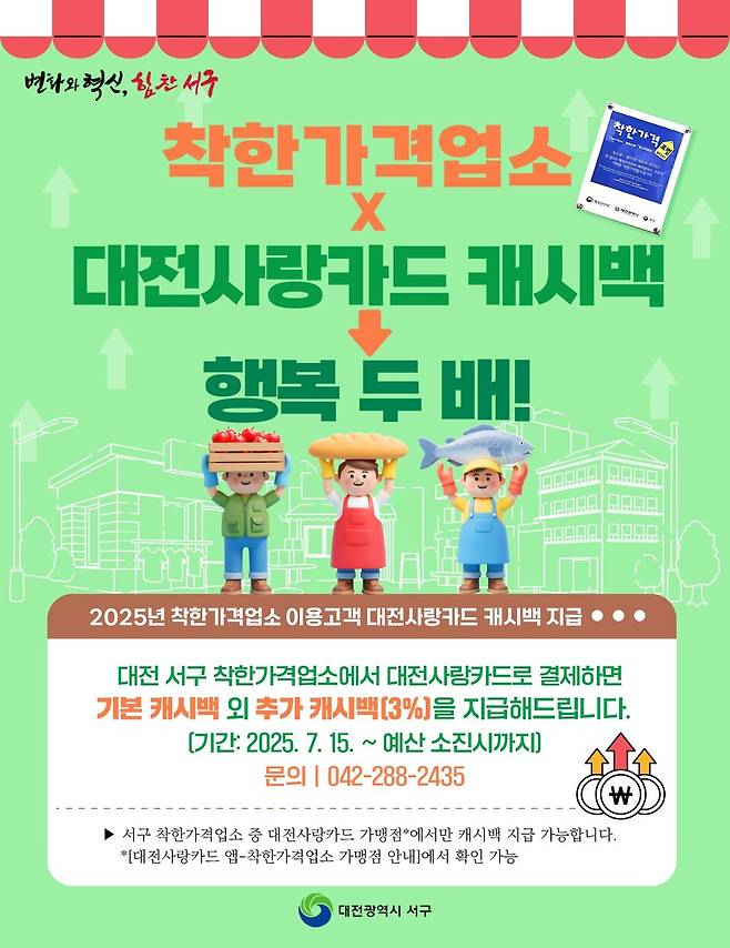 ◇ 서구, 착한가격업소에 대전사랑카드 사용시 3% 추가 적립