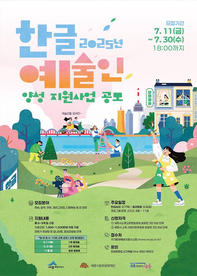 ◇ 세종시문화관광재단, '한글예술인 양성 지원사업' 공모