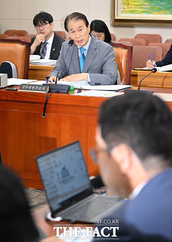 [더팩트ㅣ국회=박헌우 기자] 권오을 국가보훈부 장관 후보자가 15일 오전 서울 여의도 국회 정문위원회에서 열린 인사청문회에 참석해 인사말을 하고 있다.