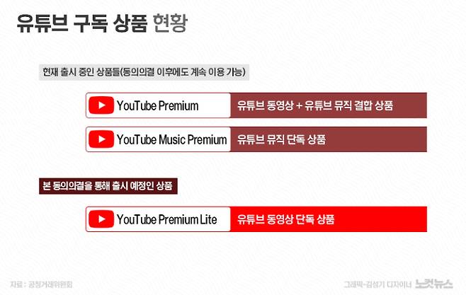 공정거래위원회가 구글과의 협의 끝에 국내에도 유튜브 뮤직 없이 광고 없는 유튜브 동영상을 제공하는 '유튜브 라이트' 요금제를 출시하도록 잠정 동의했다.
