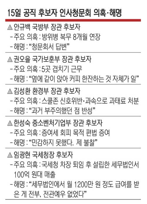 이재명 정부 초대 내각 인사청문회 2일 차인 15일 청문회가 '검증의 장'이 아닌 여야 '정쟁의 장'으로 변질되고 있다.