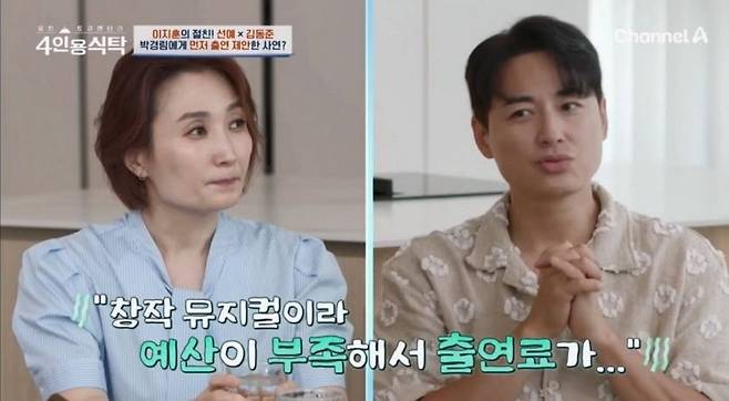 14일 방송된 채널A 예능 프로그램 '절친 토큐멘터리 4인용식탁'에서는 박경림, 이지훈, 선예, 김동준이 게스트로 출연했다.