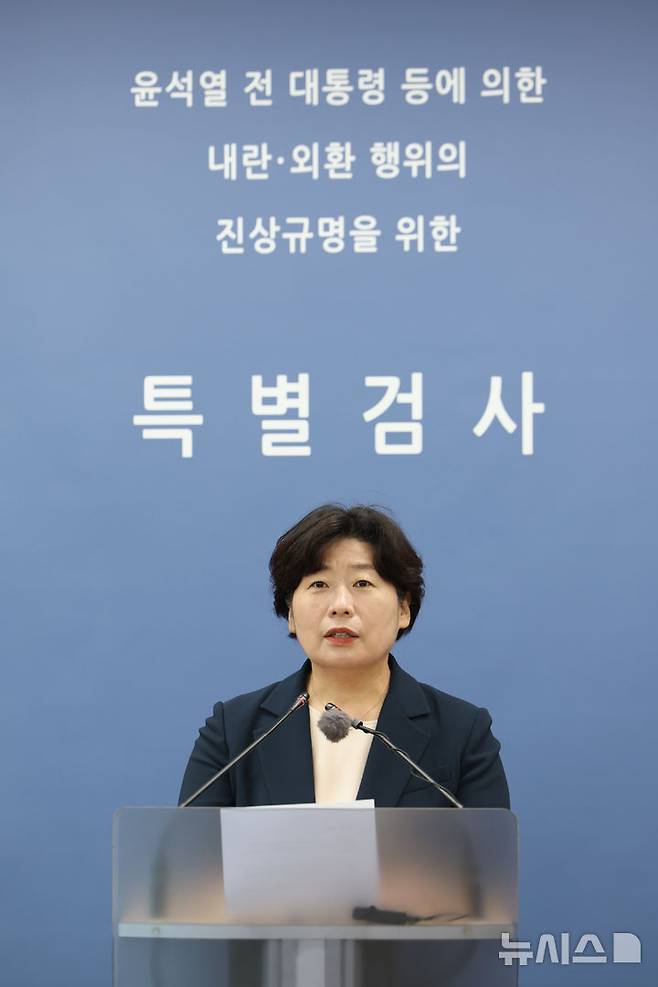 [서울=뉴시스] 황준선 기자 = 박지영 내란 특검 특검보가 15일 오후 특검 사무실이 마련된 서울 서초구 고등검찰청 기자실에서 정례 브리핑을 하고 있다. 2025.07.15. hwang@newsis.com