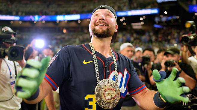 ▲ 롤리가 15일(한국시간) 미국 조지아주 애틀랜타 트루이스트파크에서 열린 MLB 올스타 홈런 더비에서 우승한 뒤, 기뻐하고 있다.