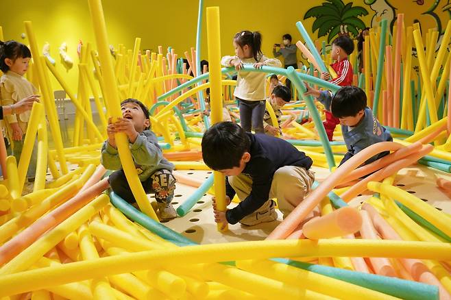 전시 공간은 약 300평 규모로, 조각·미디어아트·그래피티 등 다양한 현대미술 장르의 작가들이 참여해 제작한 12개의 체험 콘텐츠가 마련돼 있다. 아이들이 직접 참여할 수 있는 미끄럼틀, 볼풀, 스펀지 큐브 등 오브제를 통해 예술작품을 시각적·신체적으로 체험할 수 있도록 구성됐다. 소마미술관 관계자는 “작품을 손으로 만지고, 몸을 움직이며 느낄 수 있는 다감각적 체험 전시로서 다양한 연령층의 관람객과의 접점을 확대하고 있다”고 설명했다.