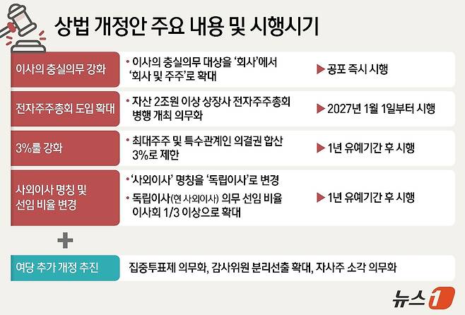 [그래픽] 상법 개정안 주요 내용 및 시행시기