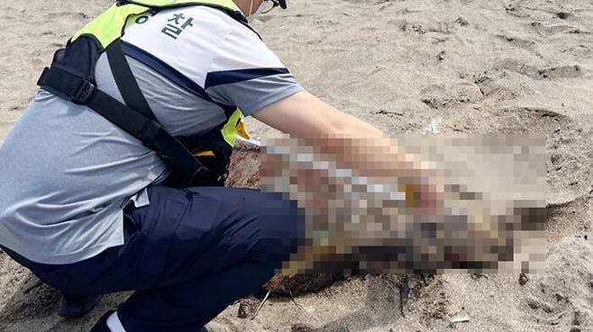 해경은 불법 포획 흔적은 없는 것으로 확인, 지방자치단체에 거북이 사체를 인계했습니다.