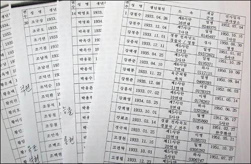 | ▲ 소년병 전우회에서 발굴한 '소년병 전사자' 명단. 1933년생과 1934년생이 가장 많고, 간혹 1935년생도 징집됐다. |