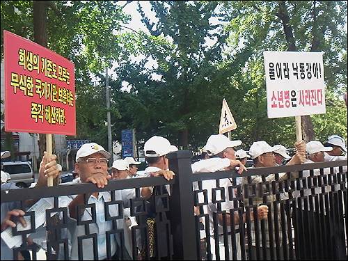 | ▲ 2010년 9월 7일 한국전쟁 참전 소년병들이 국가보훈처 앞에서 "국가유공자로 예우해 달라"며 시위를 벌였다. |