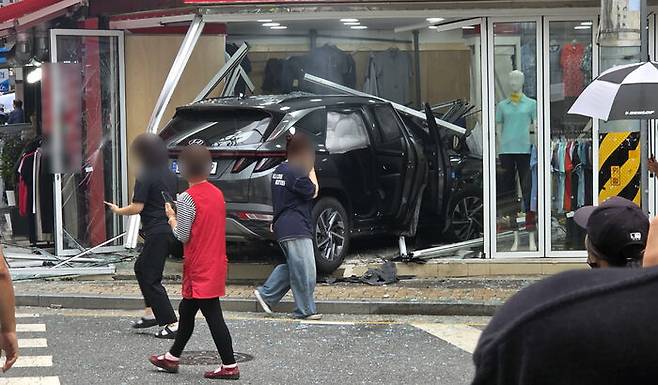 "방향 꺾다가" 1층 의류 매장 돌진한 차량…4명 경상