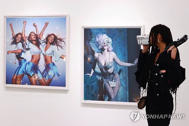 (서울=연합뉴스) 진연수 기자 = 15일 오후 서울 용산구 박여숙화랑에서 열린 사진작가 마르쿠스 클링코의 프로젝트 사진전 '아이콘들: 데이비드 보위 서거 10주기를 기리며, 그리고 그 너머'에서 참석자들이 전시를 둘러보고 있다.