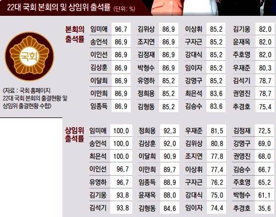 상임위 활동은 본회의보다 출석률 편차가 컸다.