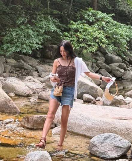 다음 계곡 나들이를 계획 중이라면 김세정 OOTD를 참고해서 준비해보자. 자연 속에서도 예쁨은 포기 못 하는 게 MZ의 룰이니까.
