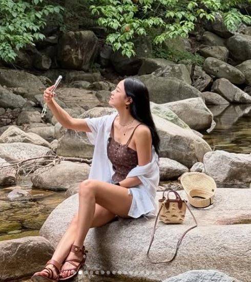 도심을 탈출해 자연과 물멍 사이에서 만난 그는 이번 시즌 '계곡 패션'의 종결자처럼 보인다.