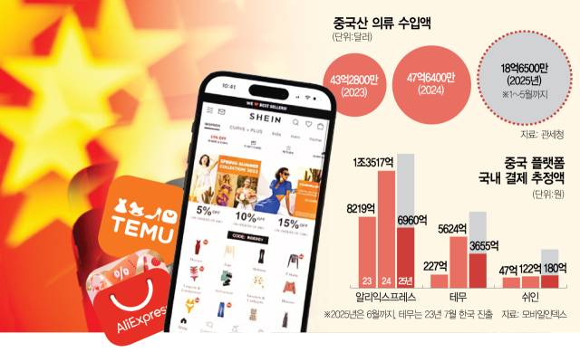 중국산 의류 수입액은 2023년 43억 2800만 달러, 2024년 47억 6400만 달러로 역대 최고치를 기록했다.