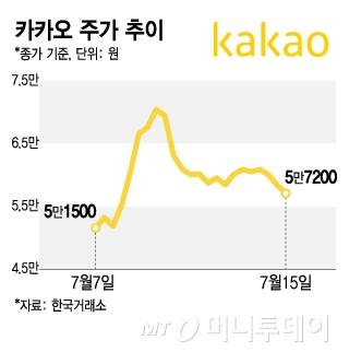 김범수 카카오 창업주가 특검 소환 요청을 받으면서 15일 카카오 그룹주가 약세를 보였다.