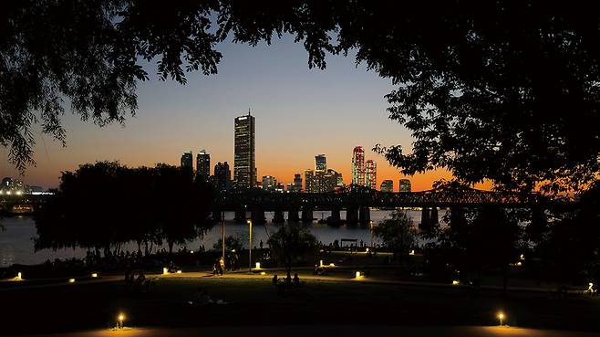 선행 연구라는 이정표를 따라 앞서간 이들의 발자취를 더듬으며, 느리지만 분명한 속도로 나아갔습니다. 끝까지 붙들다 제출하고 나니 마음은 오히려 후련했습니다. 퇴근길 들른 노들섬에는 돗자리를 펴고 앉은 사람들이 삼삼오오 여유를 나누고 있었습니다. 가볍게 부딪히는 맥주 캔 소리, 강 건너 들려오는 열차의 진동, 여름 냄새를 머금은 바람이 온몸을 감쌌습니다. 우거진 나무를 실루엣 삼아 셔터를 눌렀습니다. 그날의 해질녘은 일출처럼 눈부셨습니다.