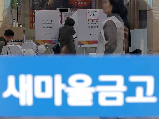 [전국 새마을금고 동시 이사장 선거가 실시된 5일 서울 종로구 광화문새마을금고 본점에 마련된 청운효자동 투표소에서 유권자가 투표를 하고 있다.(사진=연합뉴스)]