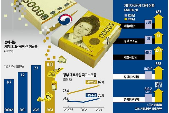 지자체들은 지방으로 이전한 세수를 소진하지도 못하고 있다. 나라살림연구소에 따르면 2023년 전국 지자체의 평균 예산 이월률은 8.0%에 달했다. 2023년 지자체 세출 예산(477조원) 가운데 38조원은 쓰지도 못하고 이듬해로 넘겼다는 뜻이다. 이 비율은 2020년 6.7% 이후 3년 연속 상승했다.