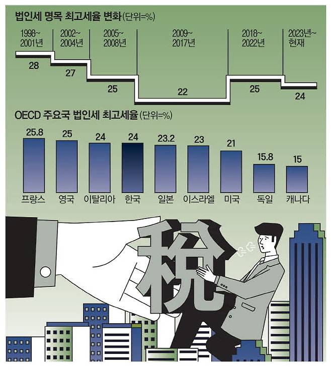 법인세 세수 결손 규모는 2023년 24조6000억원, 2024년 15조2000억원으로 전체 세수 부족의 절반 가까이가 법인세에서 발생했다.