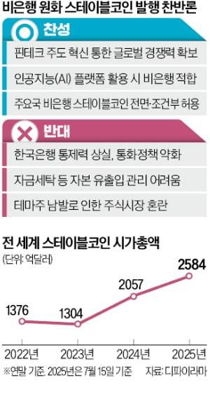 한은의 우려가 기우라는 분석도 있다. 금융권 관계자는 “스테이블코인은 본질적으로 네이버페이머니 등 선불전자지급수단과 비슷하다”며 “스테이블코인에만 통화정책에 미치는 악영향을 지나치게 부각하는 측면이 있다”고 했다. 미국 유럽 홍콩 등에서도 비은행의 스테이블코인을 전면 또는 조건부로 허용하고 있다.