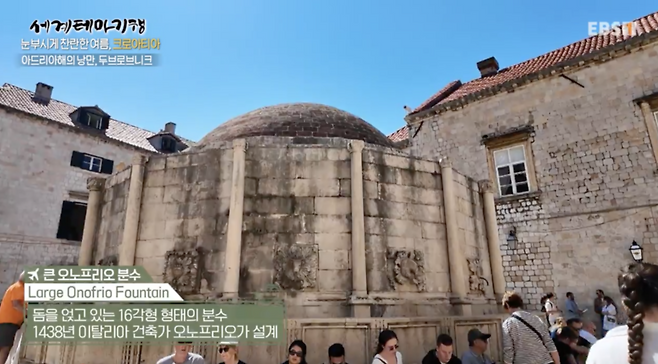 구시가지 중심 거리인 스트라둔(Stradun)은 하얀 석재로 포장한 두브로브니크의 상징적인 산책로다. 15세기에 세운 16각형 오노프리오 분수(Onofrio Fountain)는 당시 시민들에게 식수를 공급하던 시설로, 각 면에 수도꼭지를 설치해 여러 사람이 동시에 물을 사용할 수 있도록 설계했다. 지금도 시원한 물이 흘러나온다.