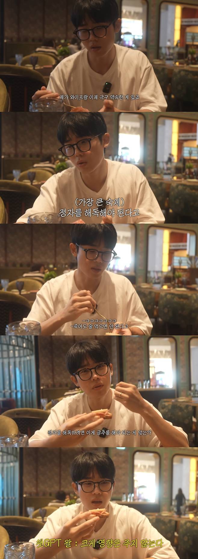 최시훈은 "정자를 해독하려면 이게 금주를 해야 하는 게 맞나 맥주 한두 잔 정도는 괜찮지 않나? 내가 오면서 챗GPT한테 물어봤다"라고 말했다.