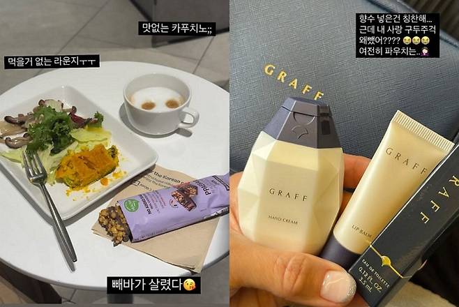 15일 왕빛나는 개인 채널에 "먹을 거 없는 라운지ㅜㅜ 맛없는 카푸치노;; 프로틴바가 살렸다"라는 글과 함께 여러 장의 사진을 올렸다.