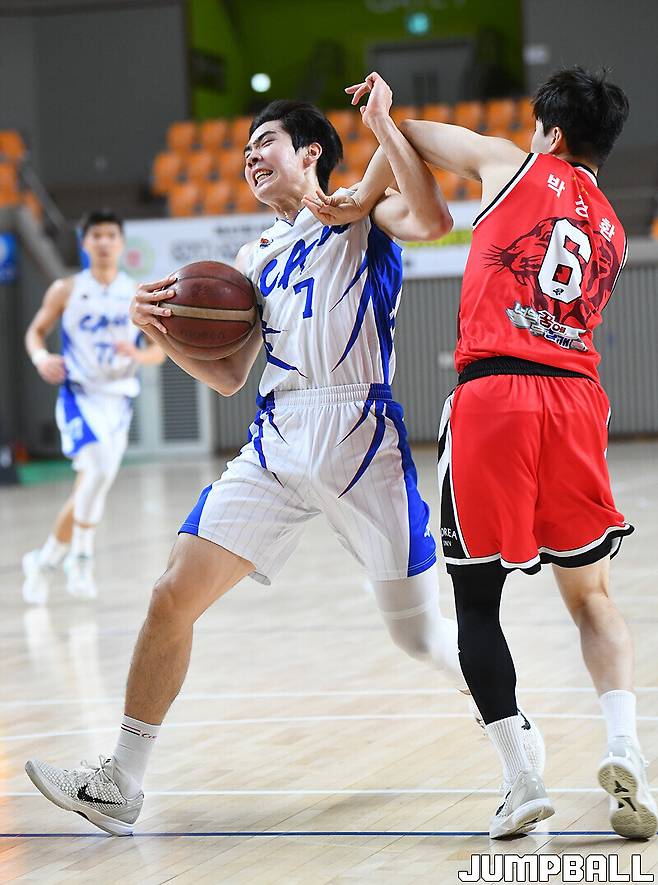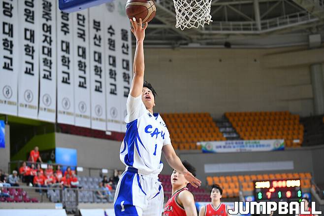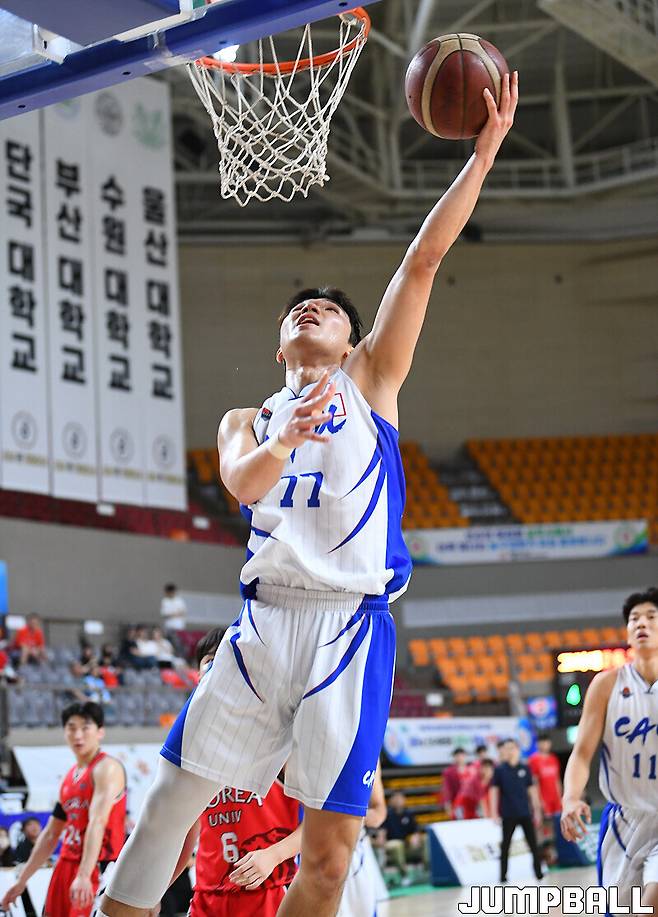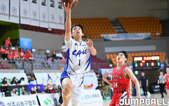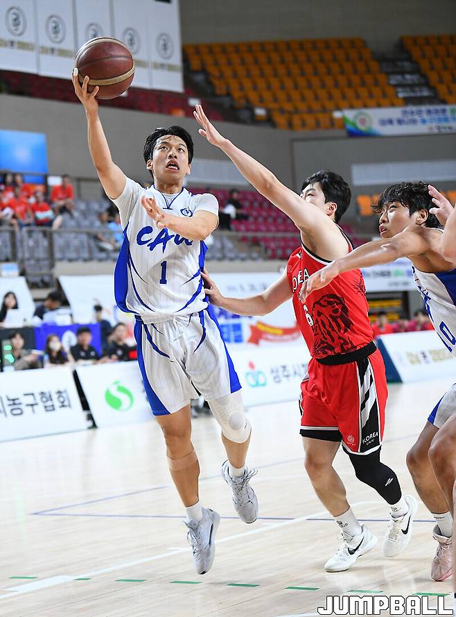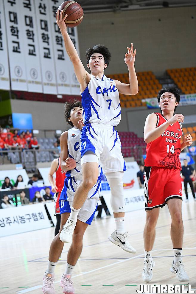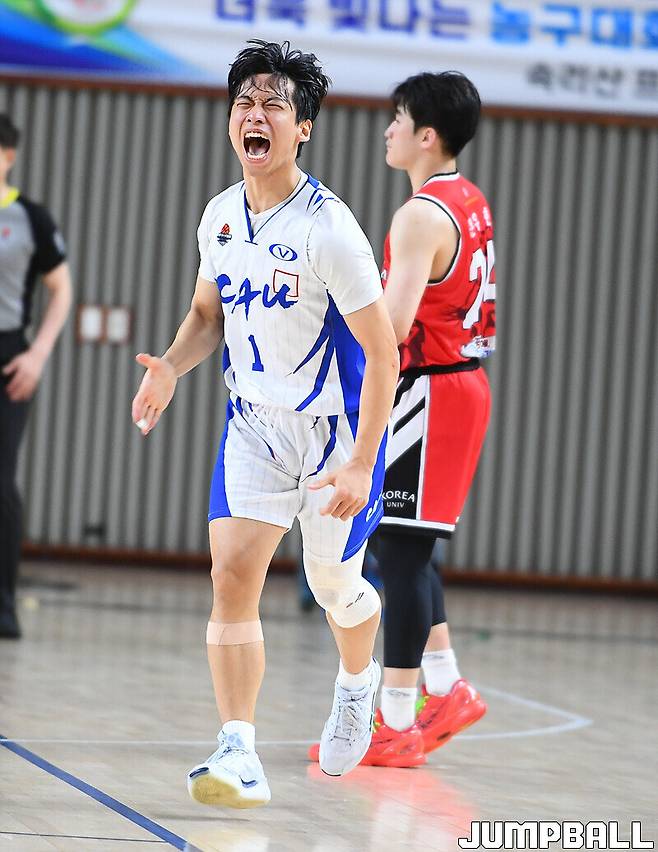 [점프볼=상주/문복주 기자] 중앙대는 15일 상주실내체육관 신관에서 열린 제41회 MBC배 전국대학농구 상주대회 남대부 4강 고려대와의 경기에서 60-57로 이겼다. 중앙대의 에이스 고찬유가 결승 3점슛 포함 14점 6리바운드 6어시스트 4스틸로 변함없는 맹활약을 펼쳤고, 김휴범(13점)도 쐐기 3점슛을 터트리며 주장의 품격을 선보였다.