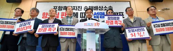 모성은 범대본 의장은 "형사재판 피고석에는 피해시민들이 납득할 수 있도록 지열발전 업체를 포항에 유치했거나 이를 지휘한 공직자도 함께 법의 판단을 받아야 한다"고 주장했다.