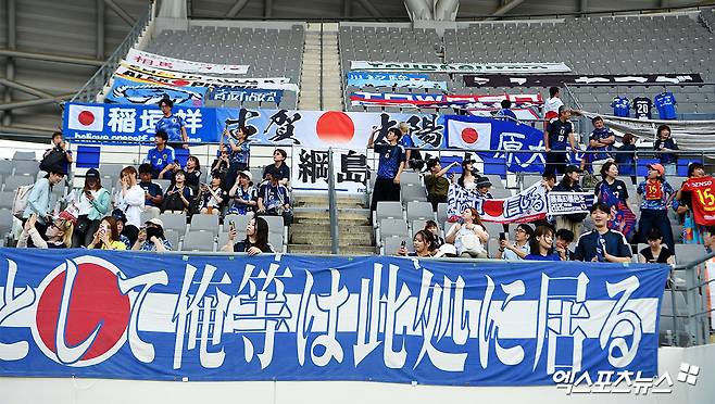 반대로 일본 축구 대표팀을 응원하는 서포터즈 '울트라 닛폰'의 숫자는 붉은악마와 비교해 꽤 됐다. 구체적인 숫자를 어림잡기는 어렵지만, 육안으로 보여지는 차이가 극명했다.