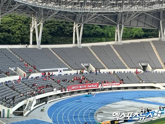 대한민국 축구 대표팀 서포터즈 '붉은악마'는 평일 저녁 경기임을 감안하더라도 꽤 적은 숫자의 팬들만 용인미르스타디움을 찾았다.