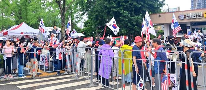 안양에서 왔다고 밝힌 A(57) 씨는 "윤 전 대통령의 건강 상태가 좋지 않다는 것을 전 국민이 알고 있는데 특검이 반인권적인 행태를 보이고 있다"고 말했다.