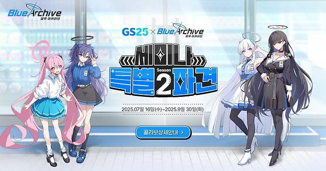 넥슨이 수집형 RPG '블루 아카이브'와 한국 대표 편의점 브랜드 'GS25'의 두 번째 컬래버레이션을 개시한다.