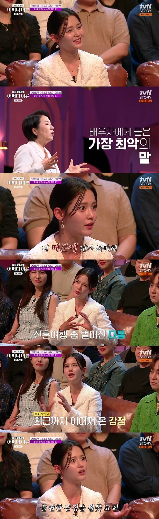 배우자에게 들었던 최악의 말이 무엇이었냐는 질문에 남보라는 "저는 남편이 저한테 '너 때문에 내가 불편해'"라고 했다며 주변을 놀라게 했다. 이를 들은 이호선은 "너 때문에 내가 불편하다는 얘기를 신혼 한 달 됐는데 한 거냐. 남편 이름이 뭐냐"고 불편한 심기를 보였다.