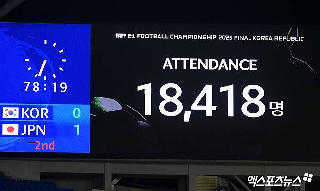 1만 8418명의 관중이 경기장을 찾은 가운데 한국은 한일전 3연패를 당하며 체면을 구겼다.