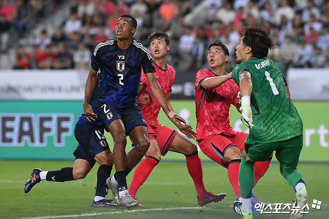 전반 19분에는 수비 진영에서 공을 잃으며 일본에게 기회를 내줬다. 공중볼 상황에서 전진한 센터백 도모야가 박스 안에서 직접 오른발 슈팅을 시도했고 살짝 빗나갔다.
