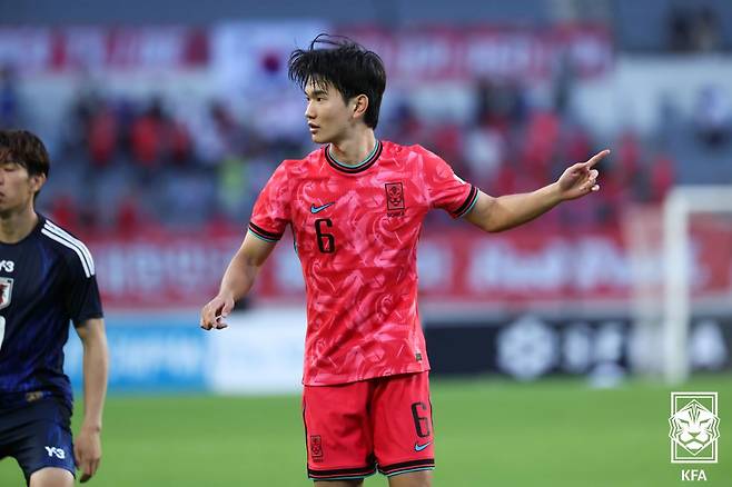 이날 홍명보 감독은 5-2-3 전형을 택했다. 조현우가 골키퍼 장갑을 착용했다. 이태석, 김주성, 박진섭, 박승욱, 김문환이 후방에서 수비를 담당했다. 중원에는 김진규, 서민우가 나란히 섰다. 일본 골문을 노릴 스리톱으로 주민규, 나상호, 이동경이 이름을 올렸다.
