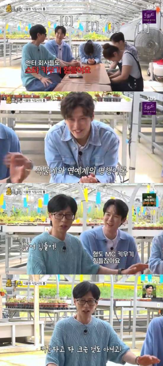 이를 들은 유재석은 "뭐든지 키우는건 힘들다. 엔터 회사들도 스타를 키우는 것이 힘들다. 아이들도 키우기 힘들고, 식물도 힘들고, 유연석을 MC로 키우는 것도 힘들다"고 웃으면서 "스타로 키운다고 다 크는 것도 아니고. 뭘 키우든 쉽지 않아"라고 말해 공감을 유발했다.