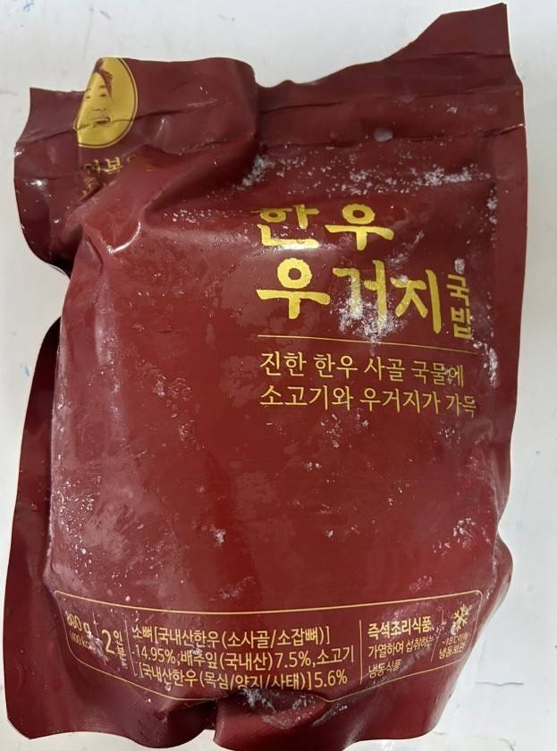 [즉석조리식품 '이연복의 복주머니 한우 우거지 국밥'에서 대장균이 기준치를 초과한 것으로 확인됐다. (사진=식품의약품안전처)]