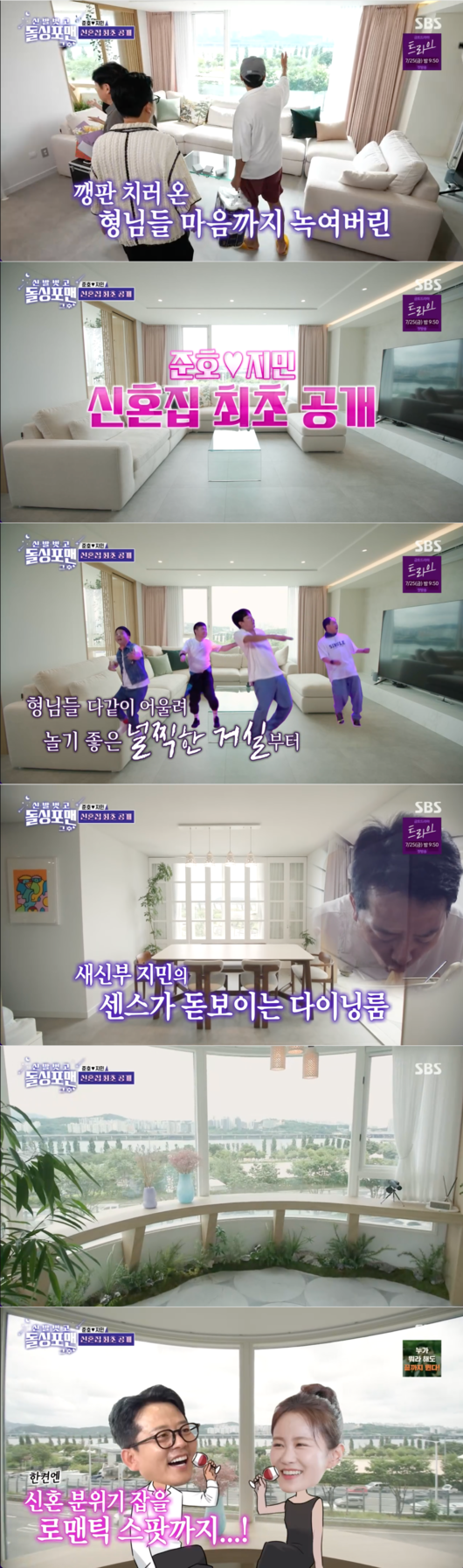 이어 조랑 부부의 깔끔하고 넓직한 집이 공개됐다. 한강뷰와 김지민의 센스가 돋보이는 다이닝룸과 로맨틱한 공간까지 공개, 모두를 놀라게 만들었다.
