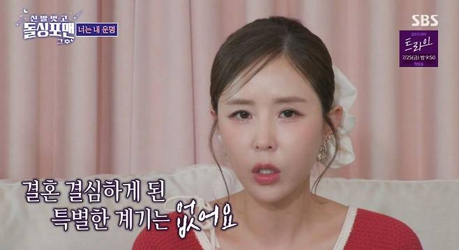 15일 SBS '신발 벗고 돌싱포맨'에선 신지가 게스트로 출연해 문원과의 결혼 비화를 공개했다.