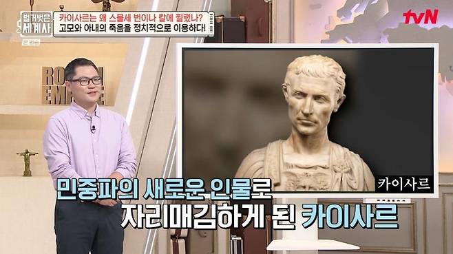 15일 방송된 tvN '벌거벗은 세계사' 212회에서는 로마 최고의 절대 권력자 카이사르의 비극적 죽음의 진실을 파헤쳤다.